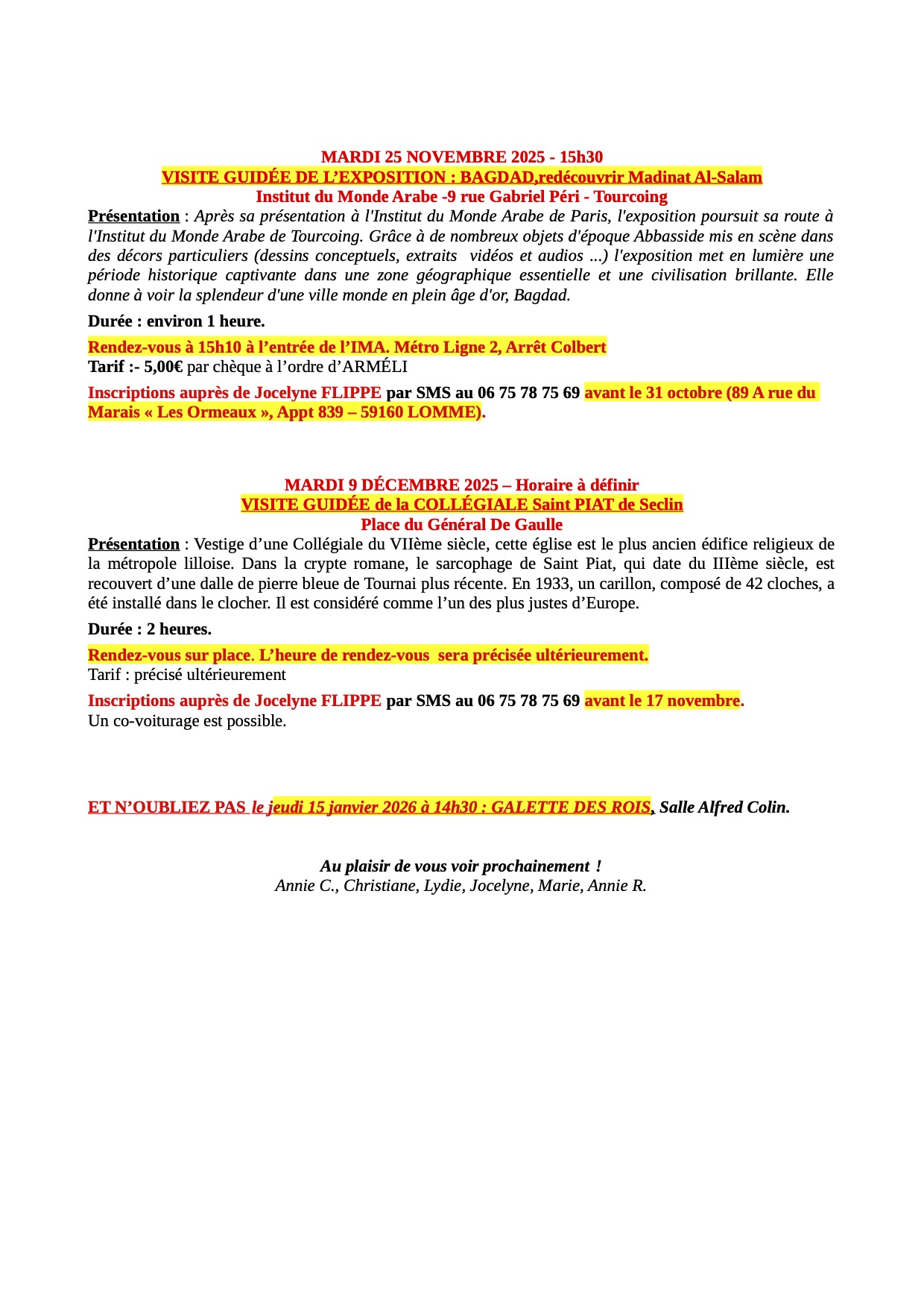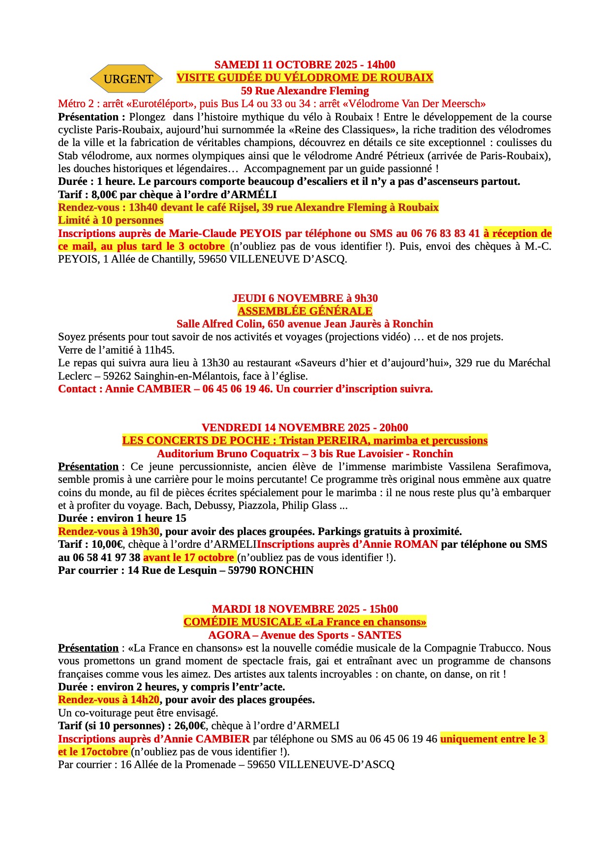 Lundi 6 octobre à 14 heures (salle Louise Michel, 4 rue Sadi-Carnot à Ronchin)