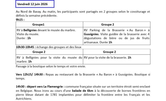Sortie 2 jours AVESNOIS 12 et 13 juin 2026 Mise à jour récente !