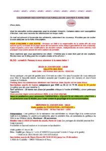 Sorties culturelles de janvier à avril 2026 Mise à jour récente !14 Jan, 2026 dans Non classé par Gaston Houbé